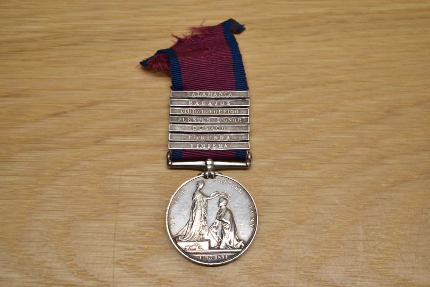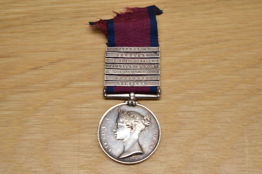 A Military General Service Medal 1848 with seven bars, Vimiera, Corunna, Busaco, Fuentes D'Onor, Ciudad Rodrigo, Badajoz, Salamanca, to W.Buckley.95th Foot.Rifles, The Military General Service Medal 1848 was issued 34 years after the last battle it commemorates, the seven bars on this medal are for the Peninsular War, fighting the French in Portugal & Spain, all bars are confirmed on Roll's, 49 Other Ranks and 3 Officers entitled to seven bars