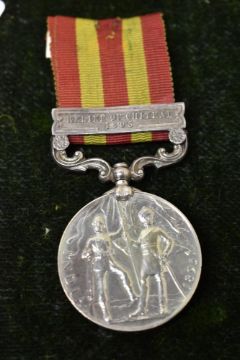 A Queen Victoria India Medal with one clasp, Relief of Chitral 1895 to 530 SPR.Niti Q O Madras S&P (Queens Own Madras Sappers & Miners) having unusual red and yellow striped ribbon, This medal replaces the GSM for Campaigns in India 1895-1902