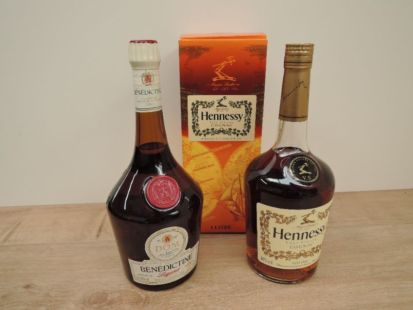 Two bottles of Alcohol, Hennessy Very Special Cognac, 40% vol, 1 Litre, in card box, Benedictine DOM Liqueur, 40% vol, 1 Litre