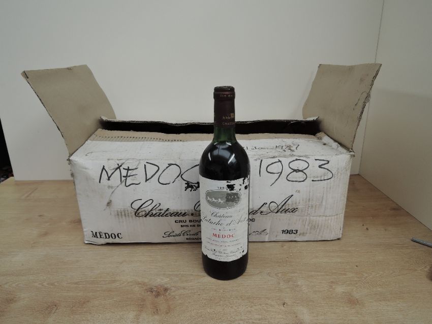 Eleven bottles of 1983 Chateau Patache D'Aux, Cru Bourgeois, Medoc, 75cl, no strength stated, in card delivery box, ex Trapps Cellars Ltd