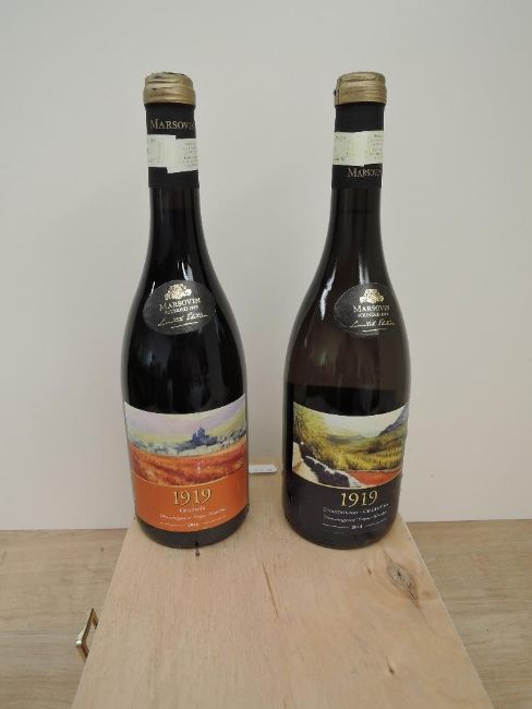 A Two Bottle Set of Marsovin Limited Edition, 1919 Gellewya 2014, 13.5% vol, 75cl and 1919 Chardonay-Girgentina 2014, 12.5% vol, 75cl, in wooden display case