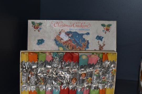 A boxed collection of mid-20th Century novelty Christmas crackers