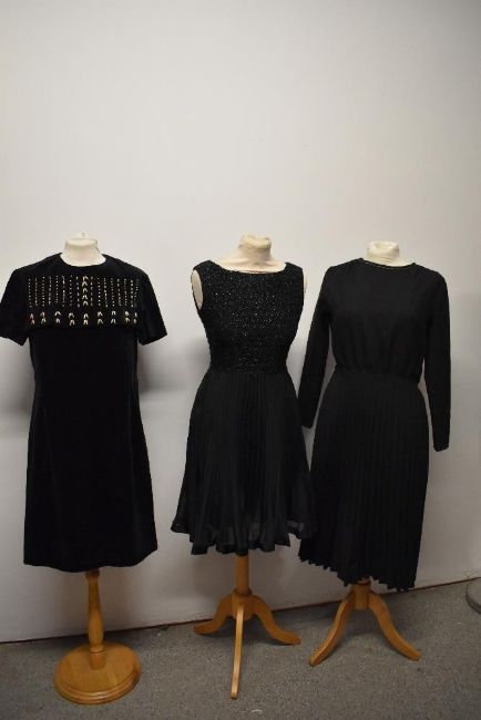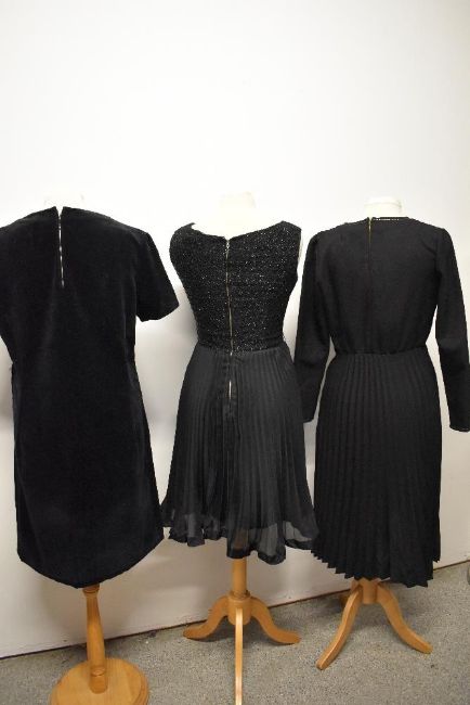 Three vintage 1960s black dresses.