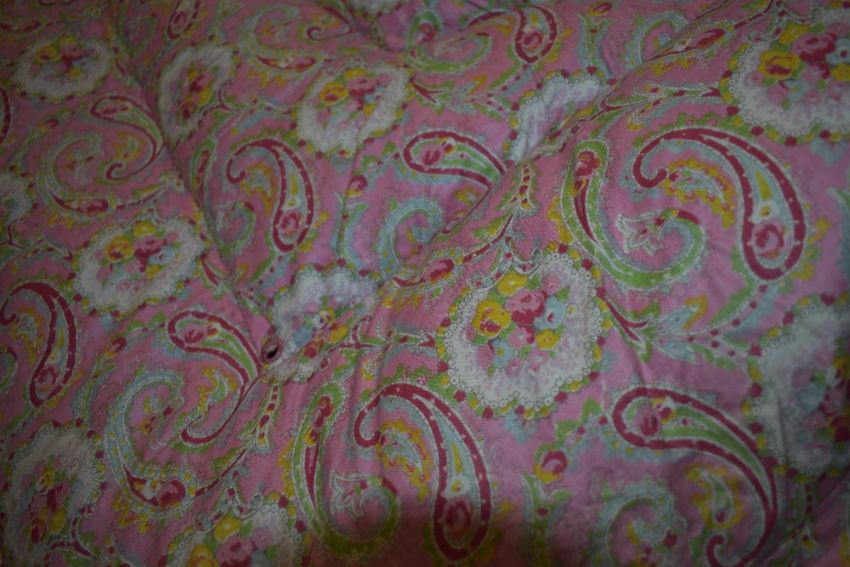 A pale pink 1930s paisley eiderdown.