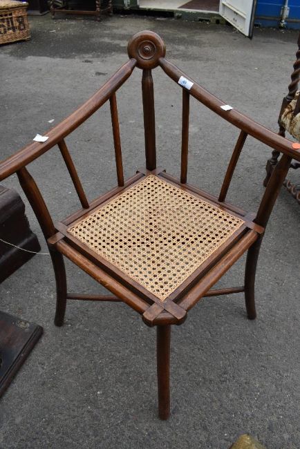 An unusal Aesthetic movement bentwood corner chair having cane seat