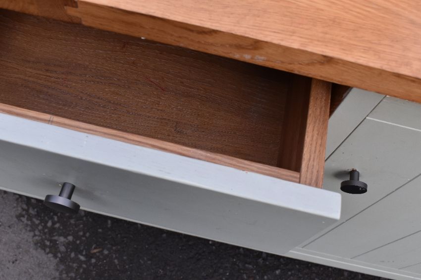 A modern sideboard having solid top, dimensions approx. W153 H86 D45