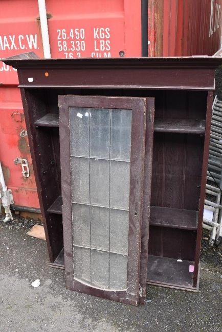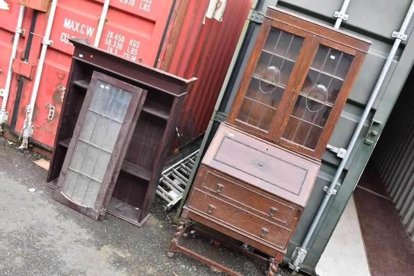 An early 20th Century oak bureau bookcase and a stand alone stained frame bookcase with leaded doors (af)