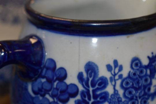Four pieces of blue and white ware including Spode jug and bowl etc.