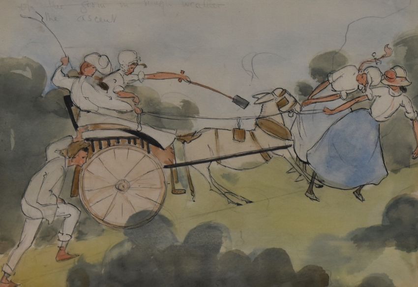 Arthur Hacker (1858-1919, British), watercolour, 'The Ascent', gallery label verso, framed, mounted, and under glass, measuring 21cm x 26cm, & 44cm x 50cm overall