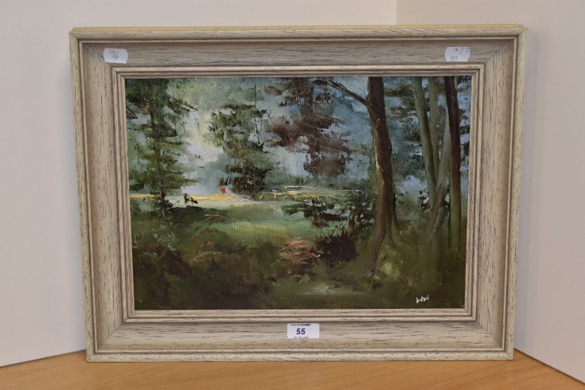 20th Century School, oil on board, 'Edge of the Wood', initials to the lower right, framed, measuring 28cm x 36cm, & 37cm x 47cm overall