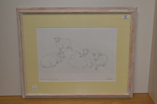 Dido Crosby (b.1961, British), pencil on paper, 'Tups Resting, Pett, East Sussex', signed to the lower right, framed, mounted, and under glass, measuring 30cm x 42cm, & 52cm x 64cm overall