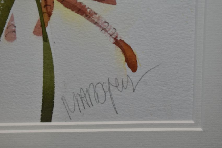 Mary Ann Rogers (Contemporary, British), watercolour, Guinea Fowl and Daffodils, signed in pencil to the lower right, framed, mounted, and under glass, measuring 46cm x 64cm, & 76cm x 92cm overall
