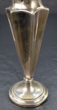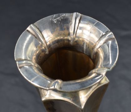 A late Victorian silver weighted vase, having a flared conforming rim and concave geometric tapered body on a step moulded circular foot, marks for Birmingham 1900, maker Cornelius Desormeaux Saunders & James Francis Hollings (Frank) Shepherd, 103g