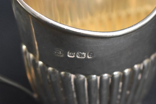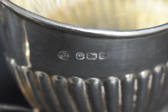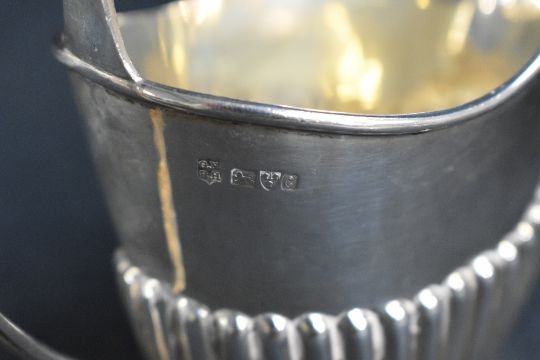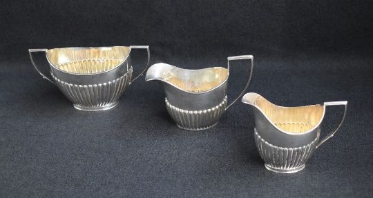 A group of three Victorian silver tea wares, comprising a sugar, milk and cream each of oval half-gadrooned form with angular handles, marks for Sheffield 1895, maker John Round & Son Ltd, 376g gross