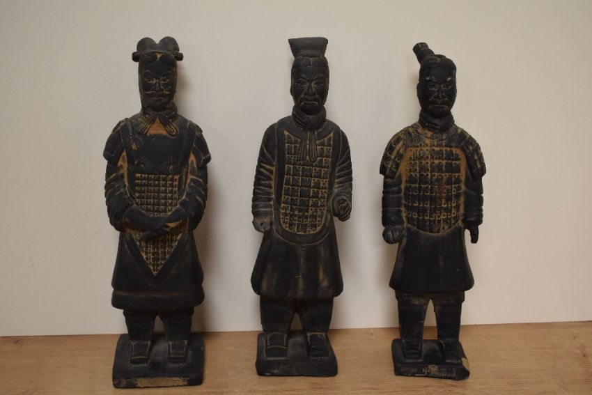 Three modern Chinese warrior figurines.