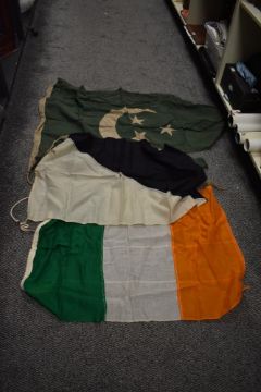 A box of vintage flags, including British flags.