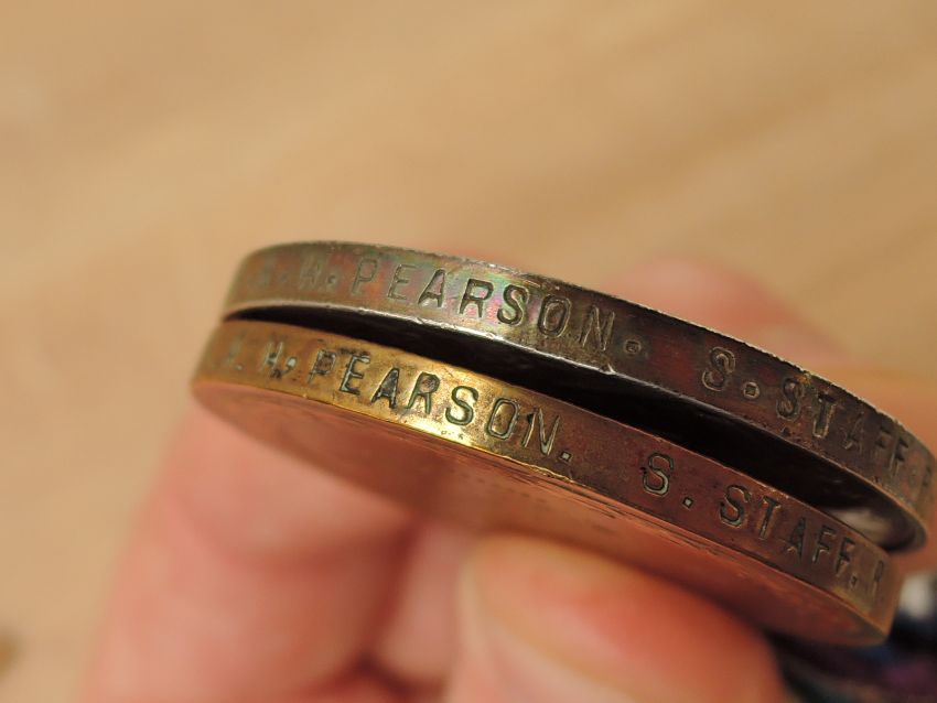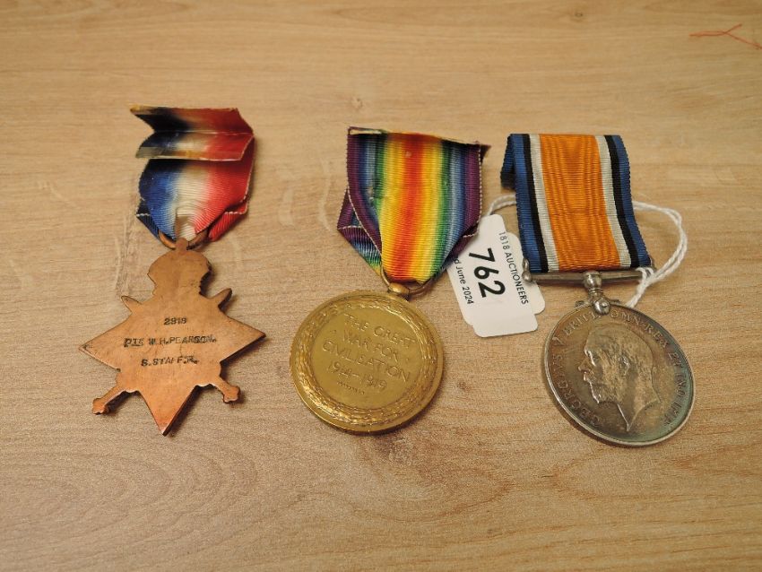 A Trio of WWI Medals to 2198 PTE.W.H.PEARSON.S.STAFF.R, 1914-15 Star, War Medal 1914-20 and Victory Medal