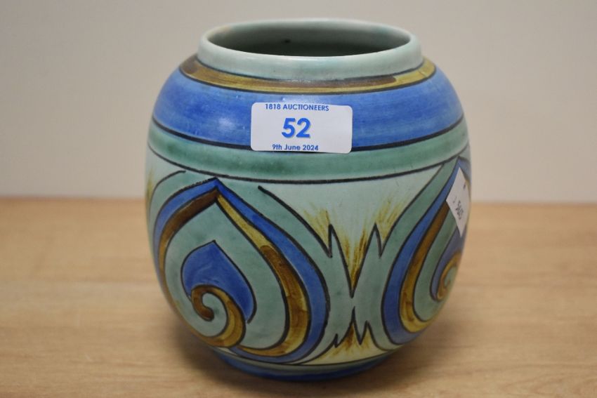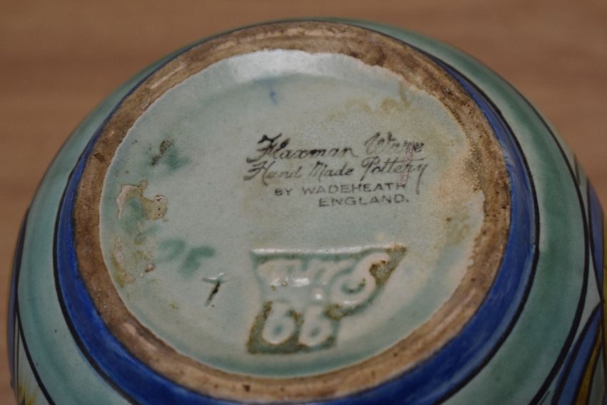 An Art Deco Flaxman Ware vase, having stylised design, with impressed marks to the underside, measuring 14cm high