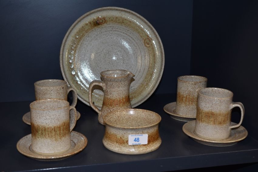 An attractive Pilling Pottery stoneware part coffee set, with 1970's inspired mottled buff glaze