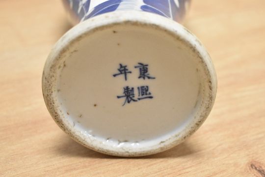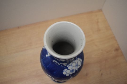 A 19th Century Chinese blue and white Prunus vase, of baluster form with character marks to the underside, measuring 30cm tall