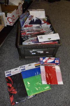 A carton of assorted flags new in packets.