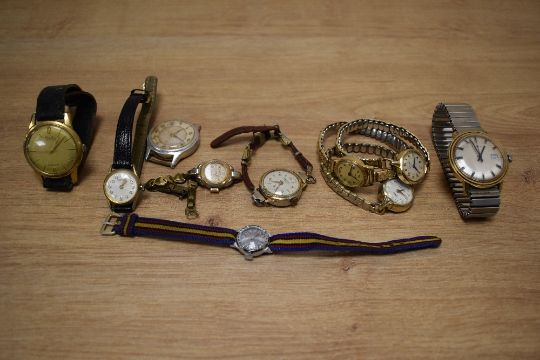 A selection of vintage wrist watches including Timex, Mero, Ginebras etc