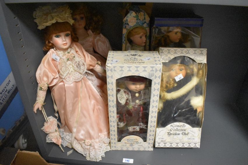 Six vintage porcelain collector's dolls by The Leonardo Collection including Abigail and Chloe, the largest measures 50cm