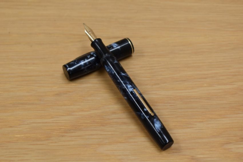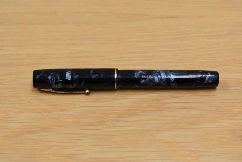 A Waterman Ideal lever fill fountain pen in blue marble having Waterman 14ct England 2A nib.