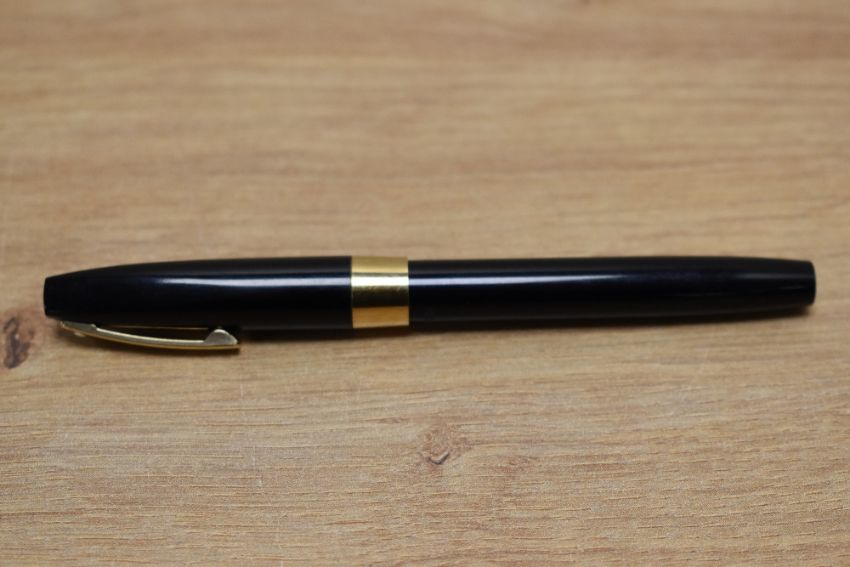 A Sheaffer Imperial IV cartridge fill fountain pen in black with gold trim having Sheaffer 14K 585 USA nib