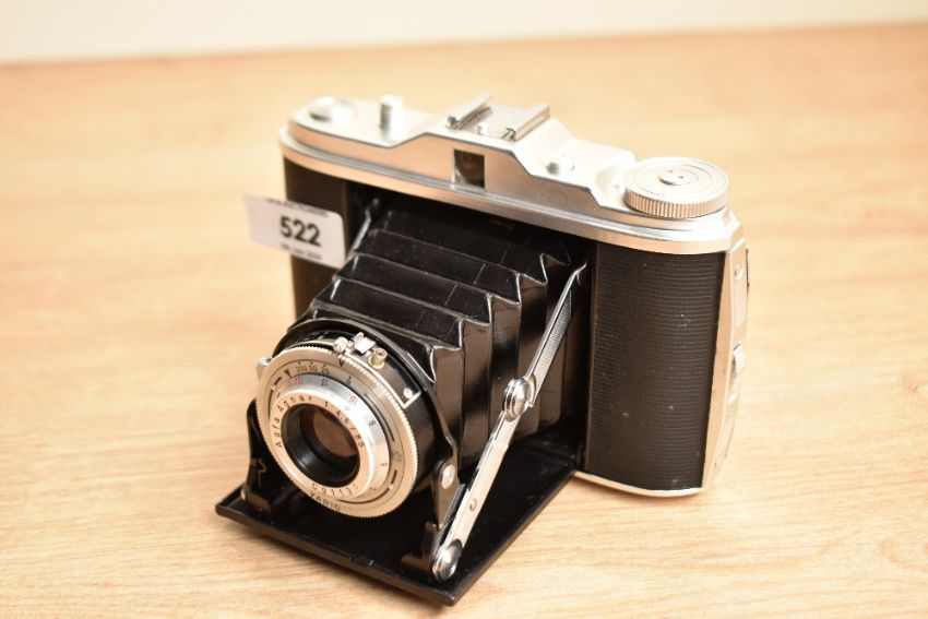 An Agfa Solette folding camera with a Sekonic light meter
