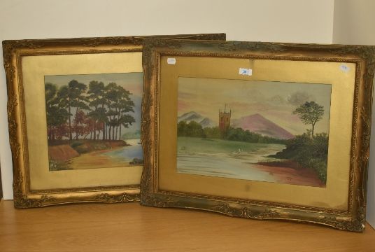 *Local Interest - H. Parker (19th/20th Century), oil on board, Two landscapes - Friars Crag at Derwentwater & Grasmere, Lake District, signed, framed, mounted, and under glass, each measuring 28cm x 43cm, & 49cm x 64cm overall (2)