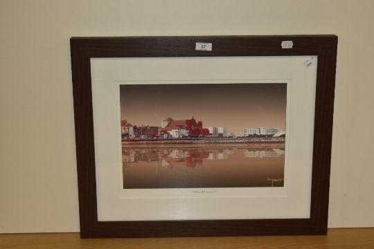 *Local Interest - After Joe Tamassy (Contemporary, British), coloured print, 'Reflection of Morecambe II', framed, mounted, and under glass, measuring 29cm x 39cm, & 49cm x 59cm overall