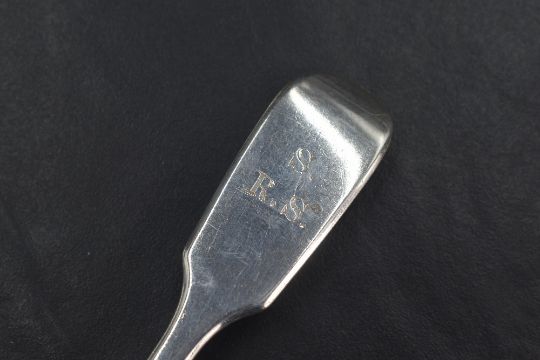 A set of six Victorian silver fiddle pattern teaspoons, having 'S.R.S' engraved to the terminals, marks for London 1869, maker H J Lias & Son (Henry John Lias & Henry John Lias), 148g