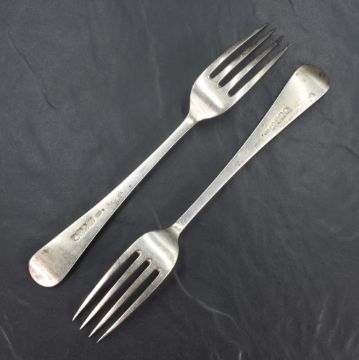 A pair of George III silver Hanoverian pattern forks, having thread decoration, marks for London 1804, maker Stephen Adams II, 137g