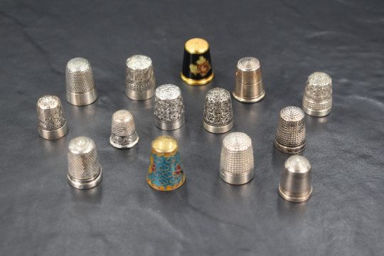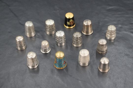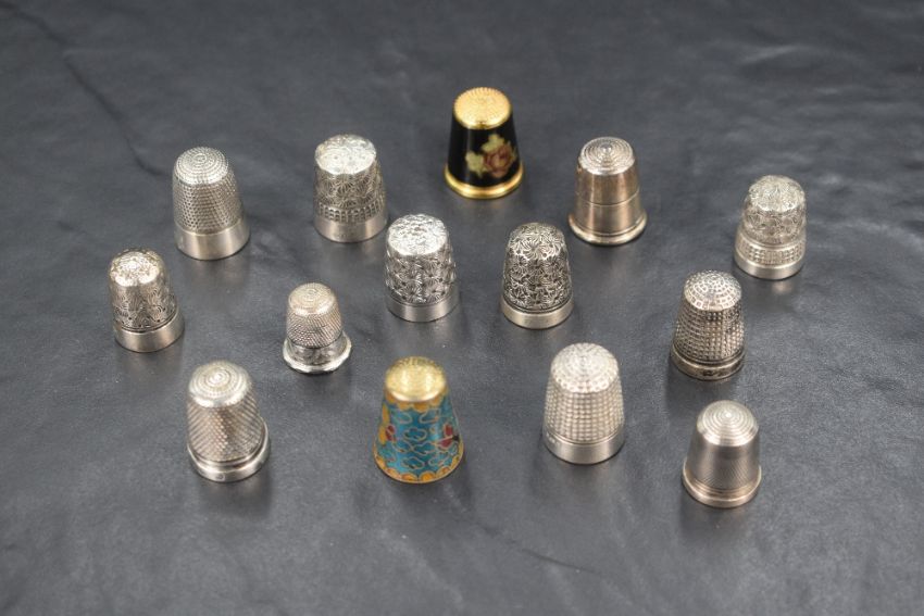 An assortment of eight silver thimbles of various size and design including Charles Horner examples, sold along with six others including an enamelled example, 42g silver gross