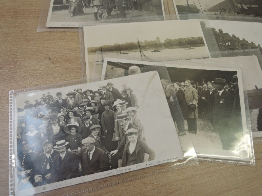 POSTCARDS, BARROW IN FURNESS, WALNEY ISLAND ETC MANY EARLY SANKEY'S EVII ERA APX 90 CARDS Fascinating batch of postcards, with a good range of earlier Edwardian Sankey cards, Valentines M & L Series etc. Plenty of local street scenes, visits by Royalty, Vickers, shipping, advertising cards. In the region of 90 cards in total, odd ones with faults but on the whole clean for age.