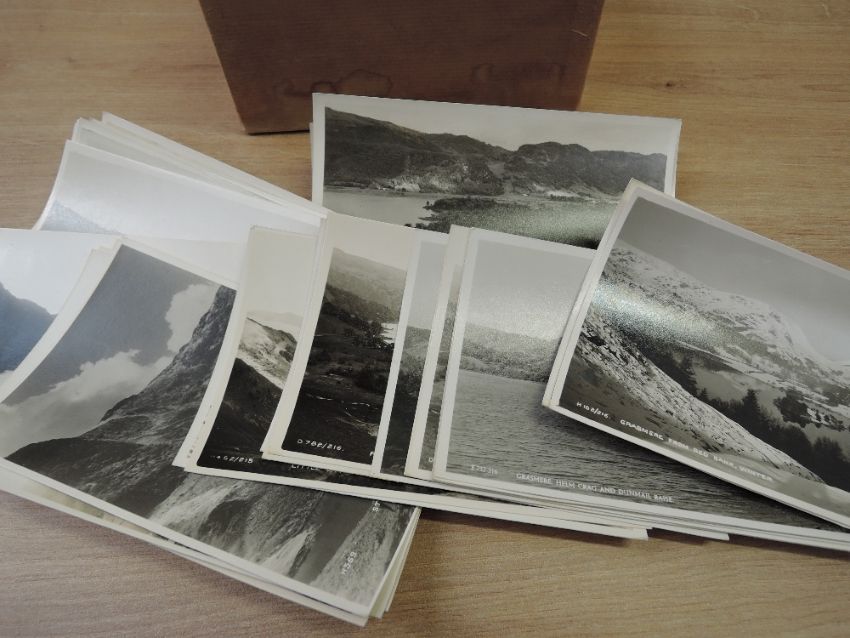 SANKEY POSTCARDS, ORIGINAL KODAK BOX STAMPED SANKEY WITH APPROX 200 SANKEY CARDS OF CUMBRIA From the original shop in Barrow, Kodak box marked Sankey with in the region of 200 or just over, unused postcards from around Cumbria. Various scenes noted including Grasmere, Hawkshead, Coniston, Windermere, Ullswater and more. Cards appear to date late 1920's onwards, and would have probably been taken by Edward's son Raymond. It is believed that there are 10 000 different images in the archives.