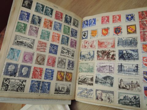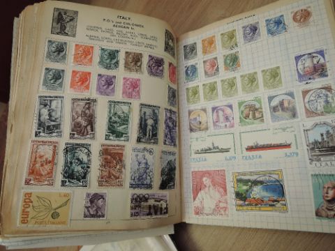 WORLD STAMP COLLECTIONS IN BOX, INCLUDING ALBUMS, PACKETS etc. ALL ERAS SEEN Box with old box with envelope of off and on paper, Crammed Improved album with chiefly earlier to mid period, well filled Simplex album with world collection and couple of other items. Some scattered faults.
