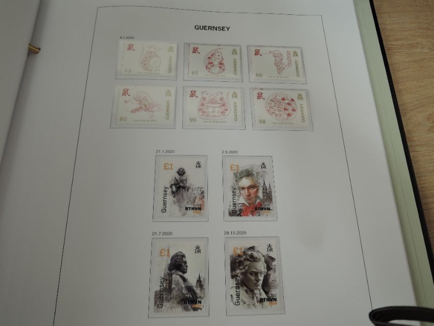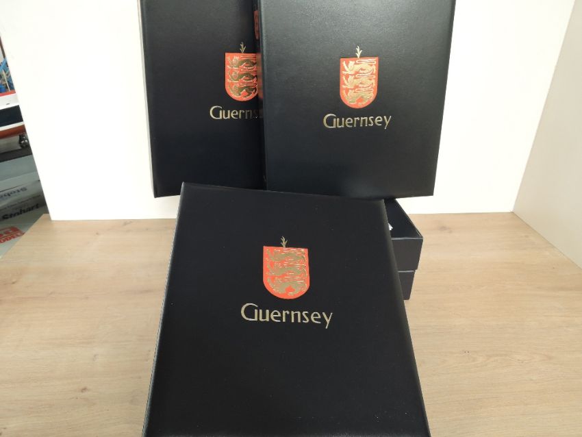 GUERNSEY 1969-2020 COMPLETE MNH COLLECTION IN 3 DAVO ALBUMS WITH CASES Stunning Guernsey collection housed in three Davo albums with cases, dating 1969-2020. All for the period appears to be complete, with plenty of extra full sheetlets etc. Third album has plenty of room to build collection on. Wonderful lot, huge face.