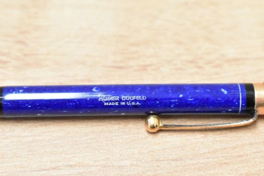 A Parker Duofold propelling pencil in lapis lazuli blue with white flecks
