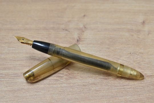 A Mabie Todd & Co Blackbird demonstrator button fill fountain pen having Blackbird G 14C-585 MT&Co England nib. Fill needs attention