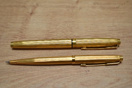 A Parker 75 Godron aerometric fill fountain pen and propelling pencil set in rolled gold.