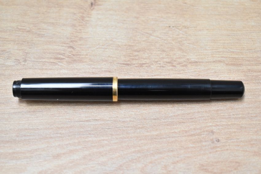A Pelikan pump fill fountain pen in black with Pelikan F nib. Clip missing