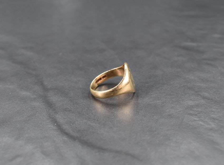 A gent's 9ct gold signet ring bearing a letter H monogram, size P & approx 5.3g