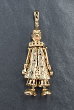 A 9ct gold articulated clown pendant, set with diamonds and sapphires to the body, 18.7g