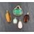 An assortment of semi-precious cabochon pendants, all set in yellow metal having no marks, including tiger's-eye, amber and opal in matrix, 26.1g