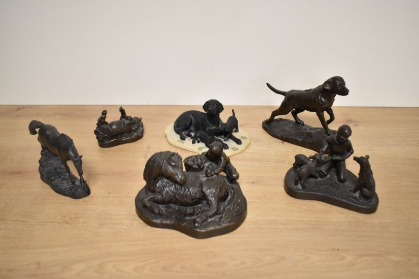 A Border Fine Arts Labrador and Pups group 206B, sold along with four Heredities studies, boy with pony, girl with lamb and sheep dog, horse and Labrador