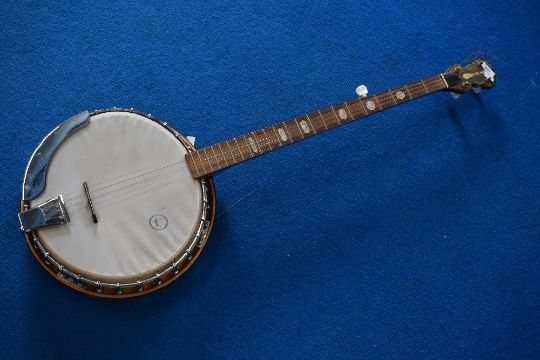 A vintage banjo, possibly Kay, stamped to back of headstock , unclear but may be KB25