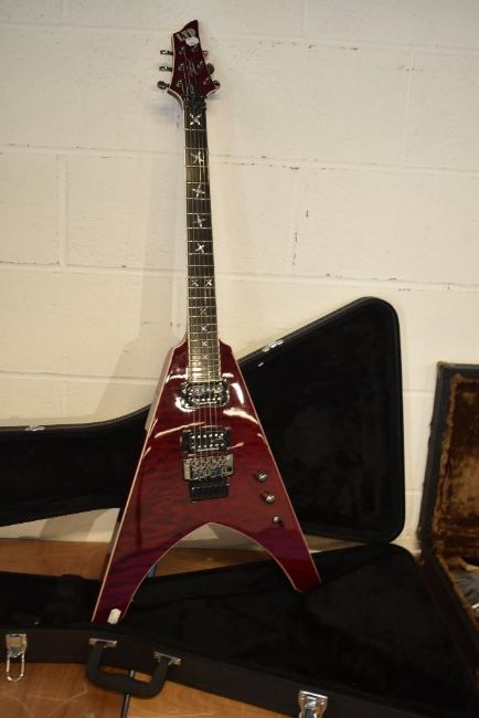 An ESP Ninja 600 Ltd electric guitar, V style with fitted hard case