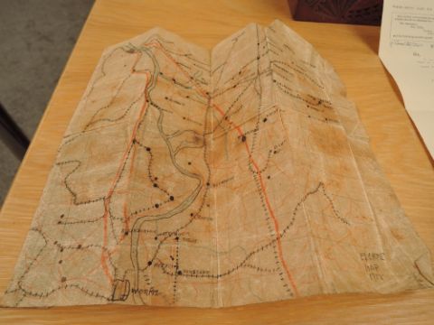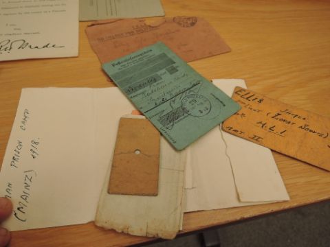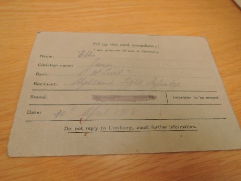 A Military Collection belonging to LIEUT.J.ELLIS comprising WWI Medal pair, War and Victory, both named LIEUT.J.ELLIS, WWII Defence Medal, unnamed as issued, The Cadet Forces Medal named TY.LIEUT.(SP).J.ELLIS.R.N.V.R, WWI Miniature War & Victory Medals, Letters sent home dated, 3.April 18, 6.April 1918 & 8.April 1918, Telegram dated 12 April 1918 reporting Lieut J Ellis of Lovat Scouts is missing from the 9th April 1918, Prisoner of War Card dated 10th April 1918, Escape Map later dated 1918, Red Cross Prisoners of War Reception Camp South Ripon dated 29th Nov 1918 'On My Way Home', War Office letter dated 18 January 1919 'Capture by the Enemy as a Prisoner of War' Hand Written Letter 'Statement Regarding Circumstances Which Led To My Capture' detailing his capture, War Office letter dated 6 April 1919 Disembodied as from the 12th March 1919, Psalms and Hymns for Soliders In The Field booklet and two hand carved Prisoner of War Wooden boxes, made during his time at MAINZ Prisoner of War Camp, one dated July 1918, J Ellis commissioned April 26 1917, attended 17th Batn (Palls) HLI